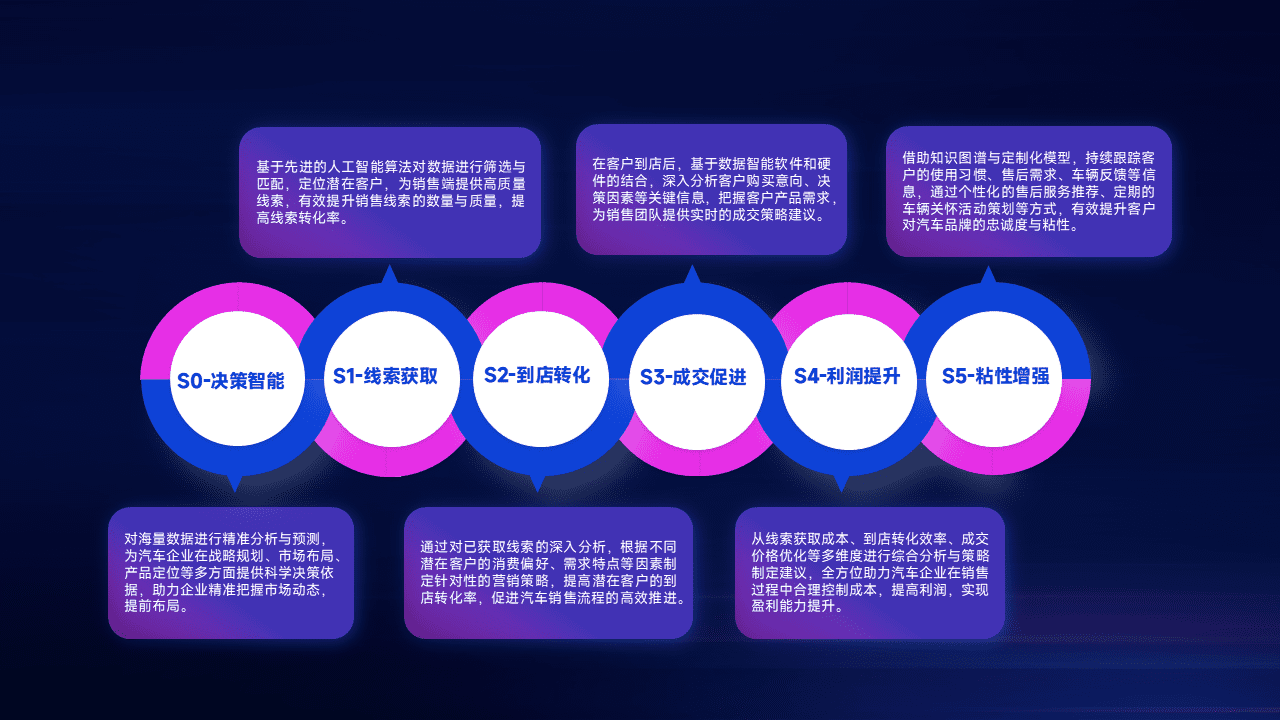 通过拓宽潜在客户来源、、优化线索分配并提高到店转化率,,以增强销售效率。。。。同时,,利用线索数据不断优化分析模型,,,,有效提升转化率,,扩大营销影响力。。。。